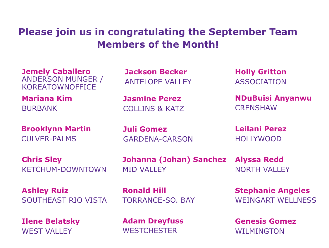 The Team Member of the Month is someone who goes above and beyond to improve the experience of others around them, finding creative ways to integrate the Y’s Areas of Impact (Healthy Living, Youth Development and Social Impact), ensuring that others are uplifted, inspired and connected. The Team Member of the Month models the Y’s Core Values of Caring, Honesty, Respect and Responsibility and leverages their influence and insight to pursue positive change.